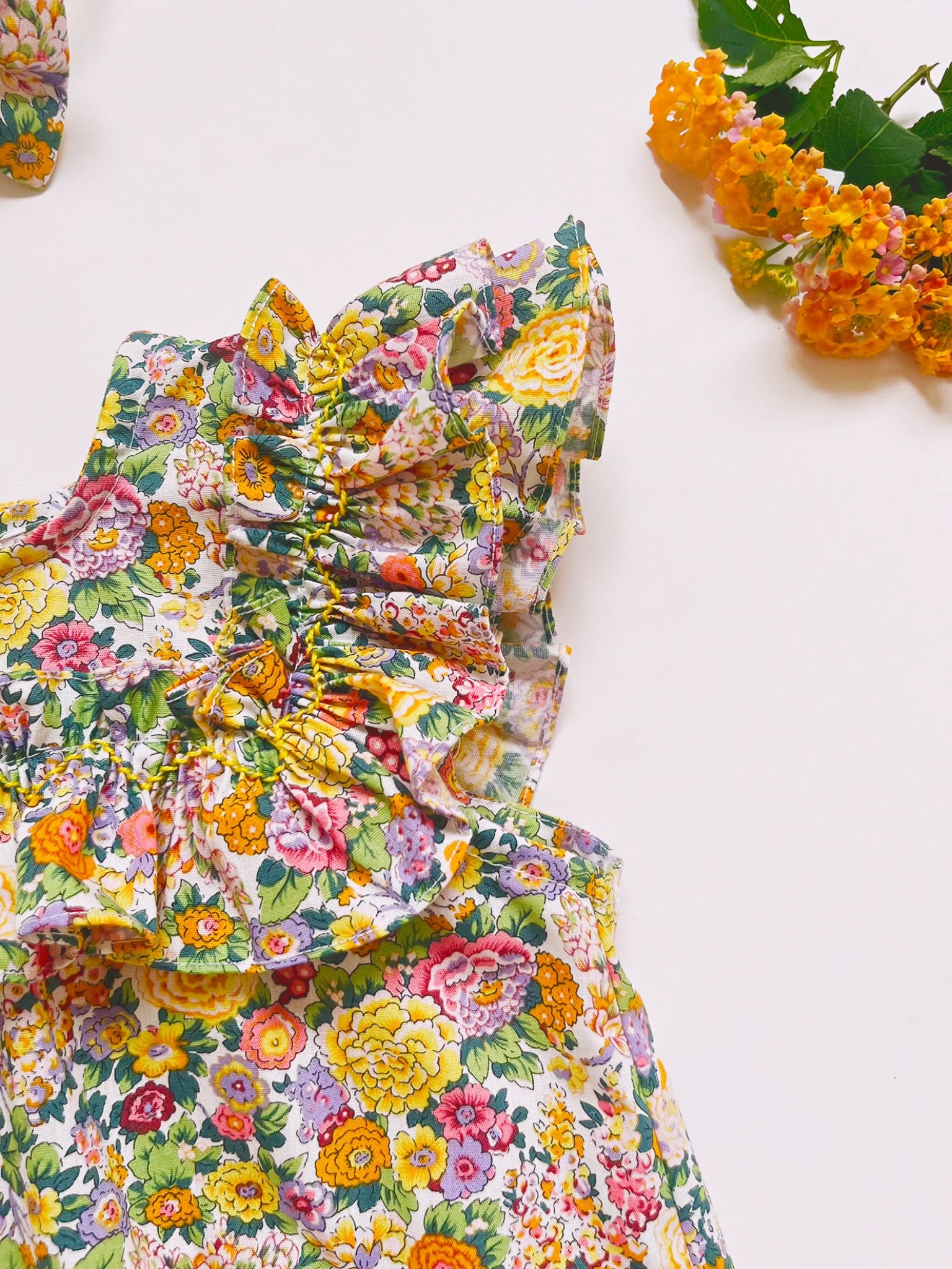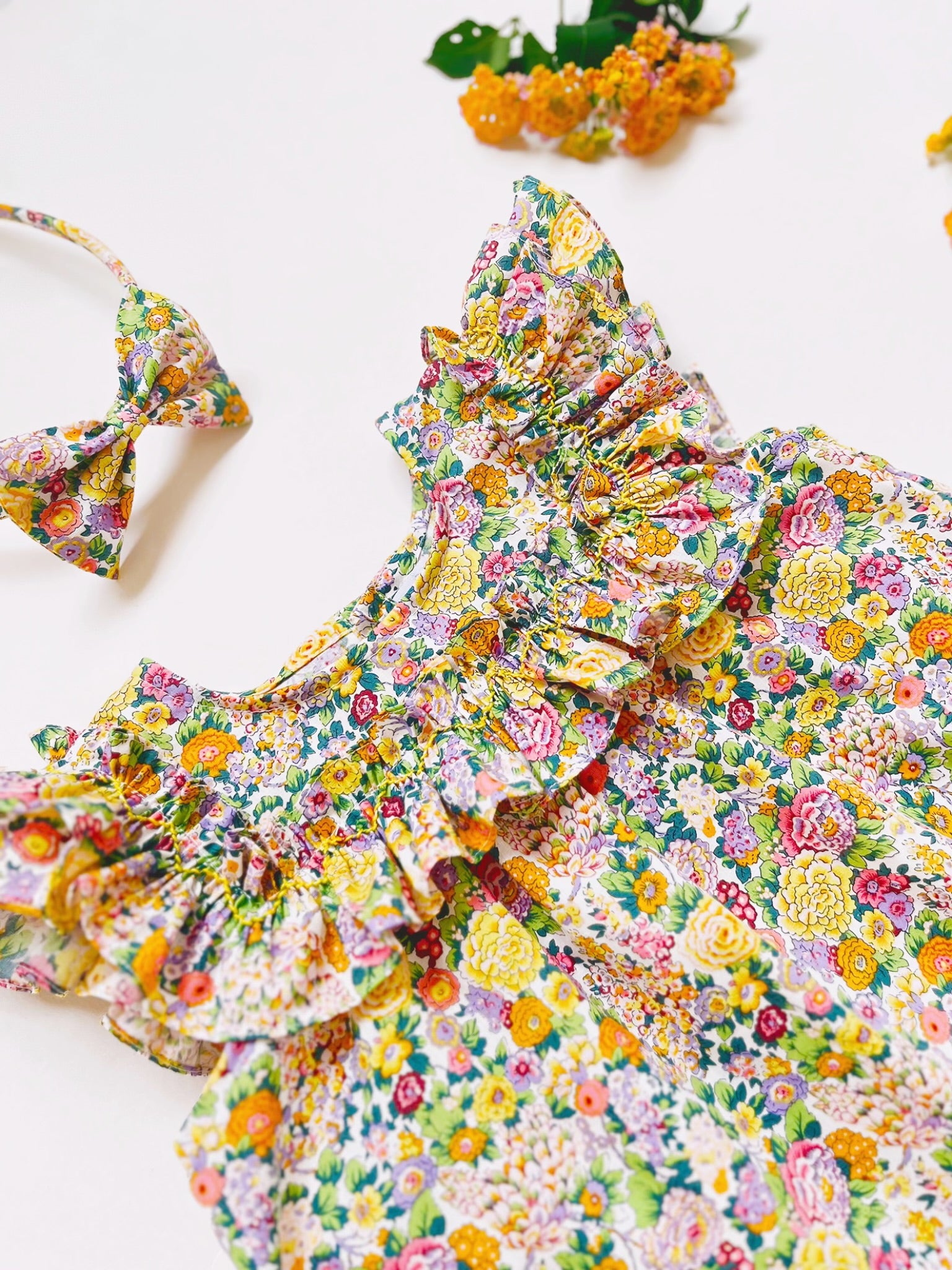 Esta encantadora blusa cuenta con un volante fruncido a mano y bordado en punto smock el cual rodea todo el canesú de la blusa. 100% algodón. alto grande.