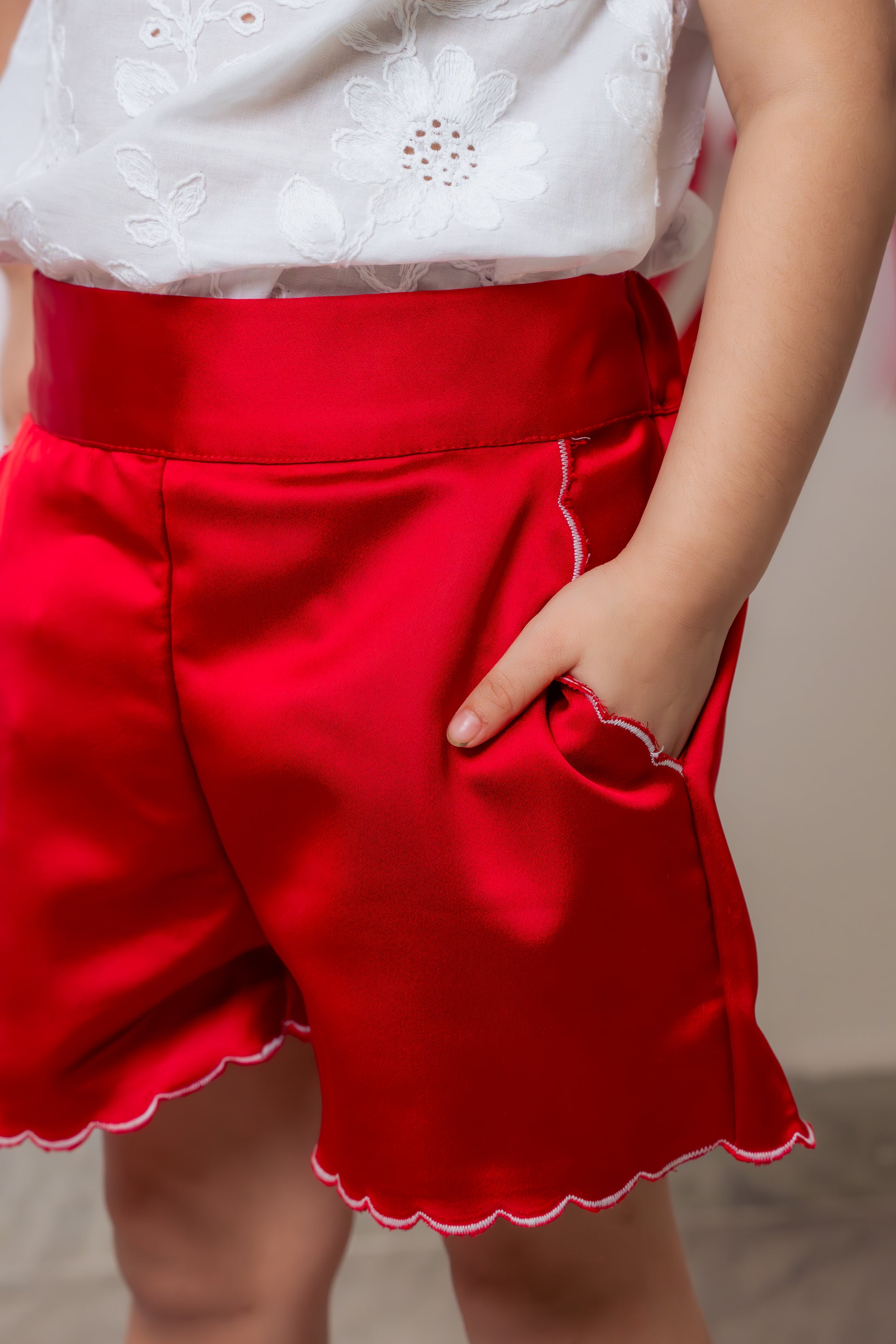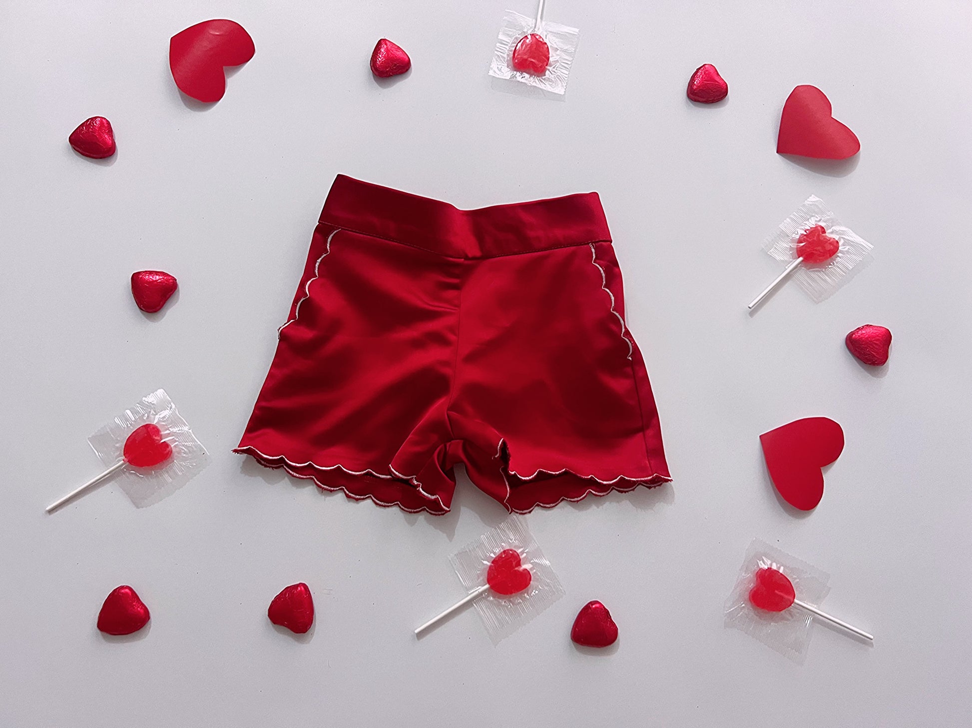 Un short con ondas románticas en sus bolsillos y piernas lo hacer ver encantador. Confeccionado en seda.