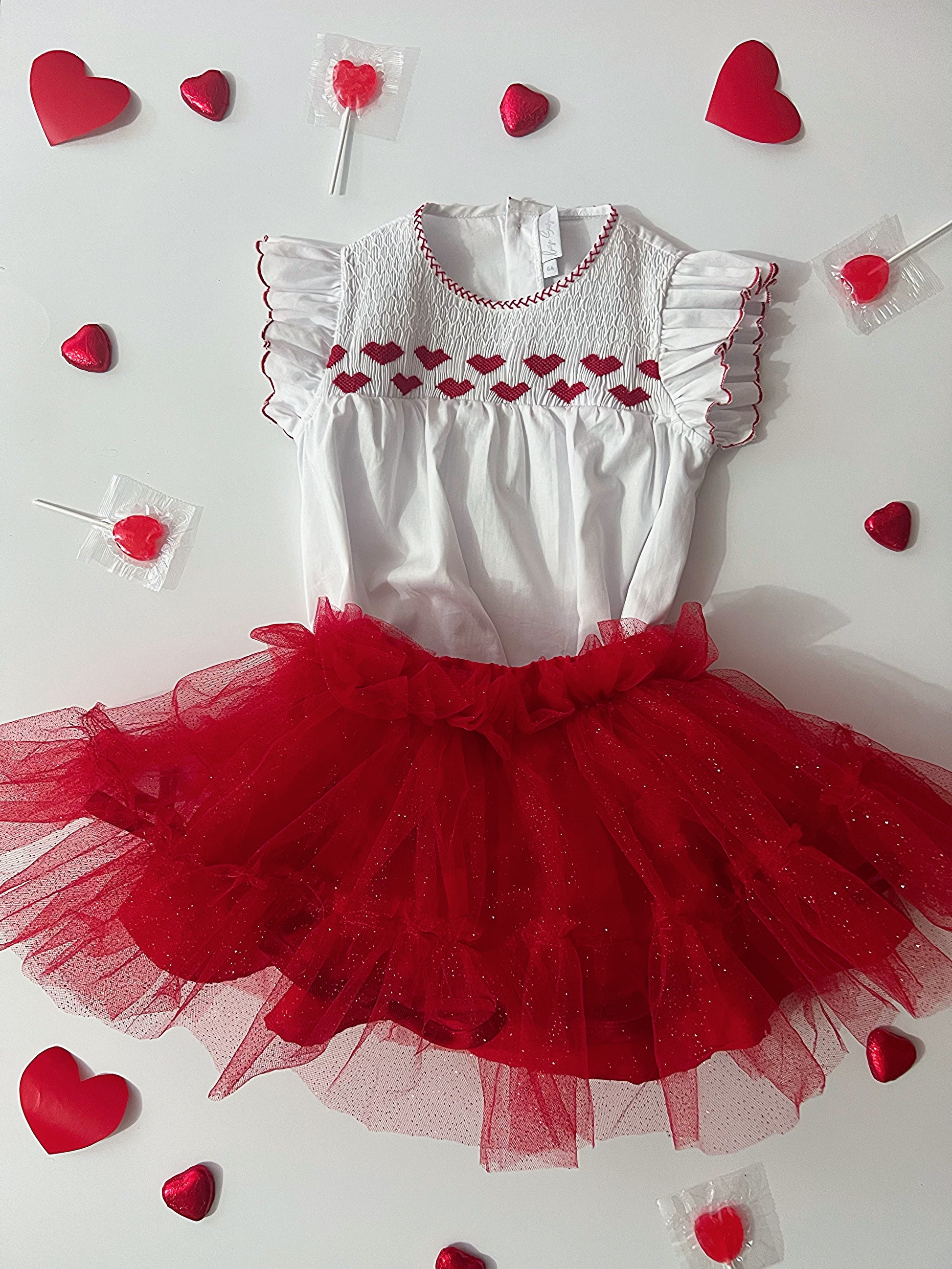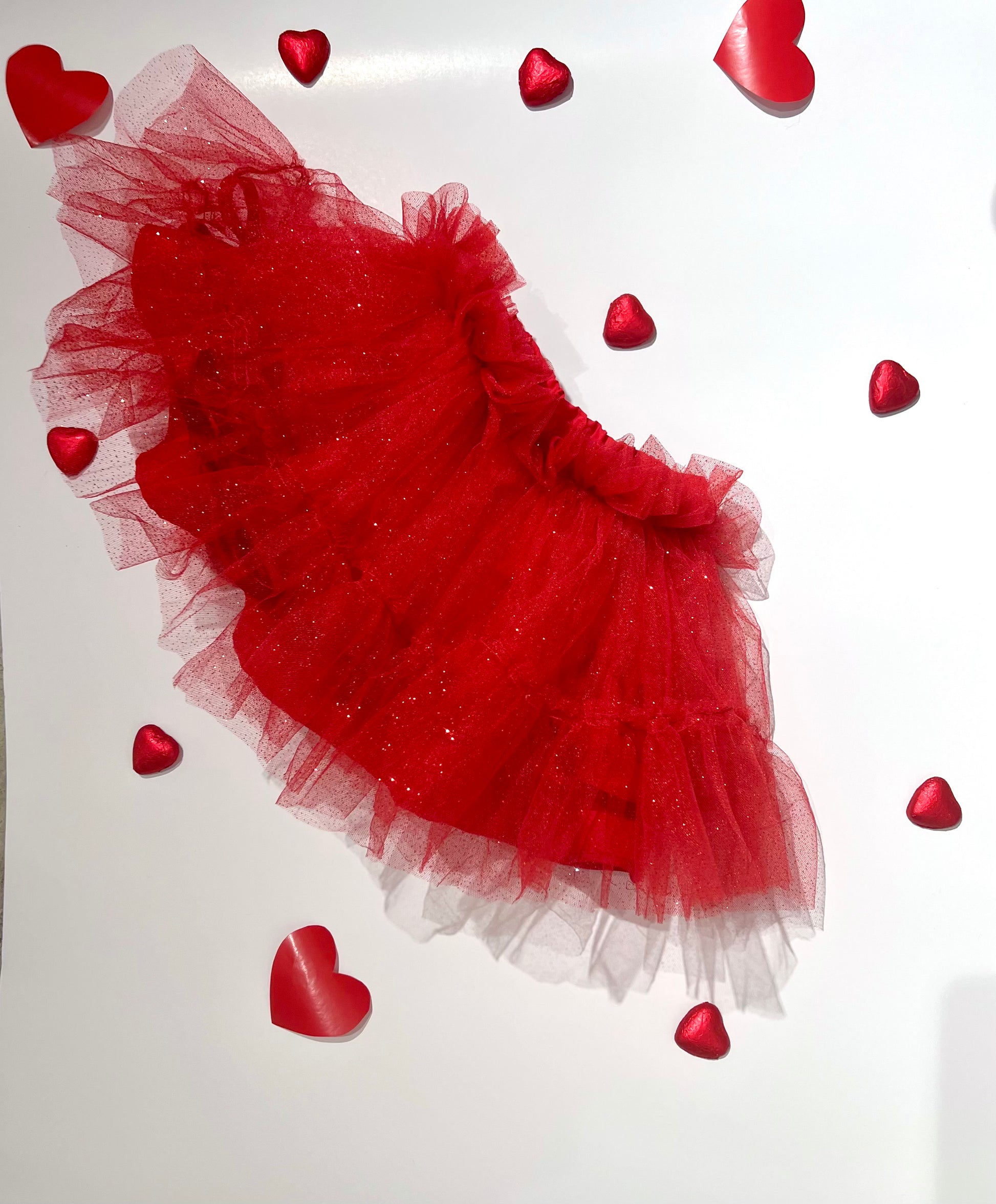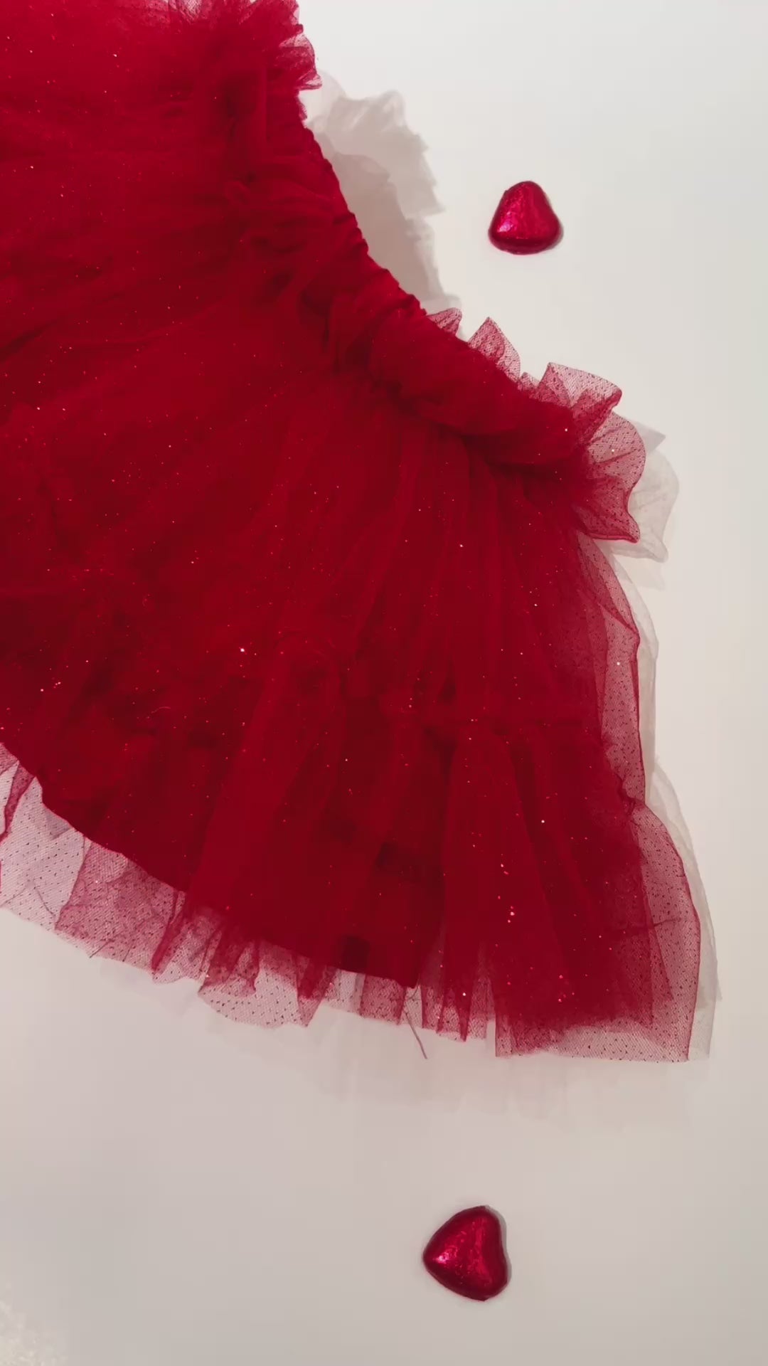 Este encantador tutú rojo escarchado es forrado en algodón 100% y cuenta varias capas de tul, volante en su orillas. Cintura elástica e incluye bombacho.