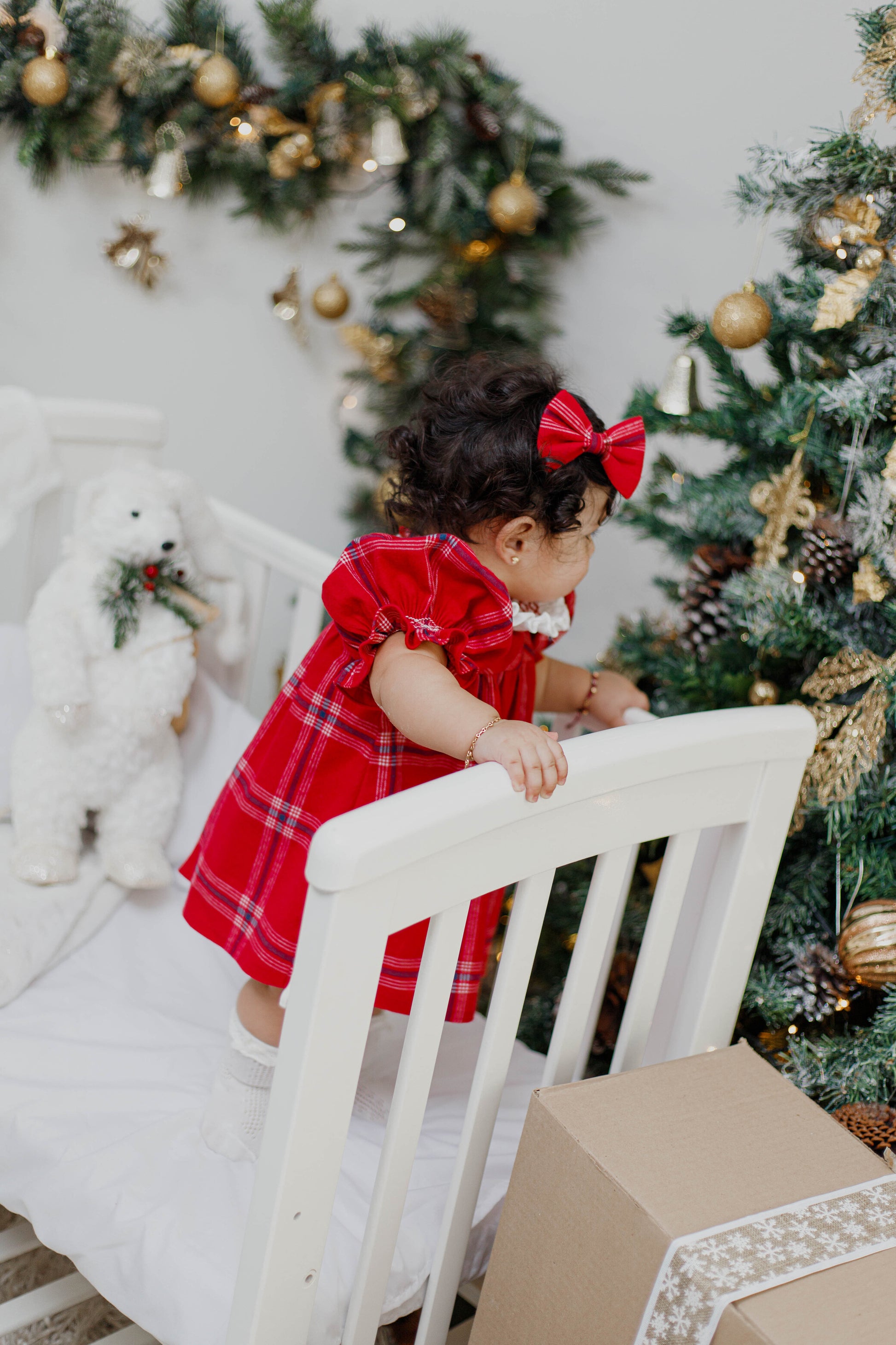 Vestido bata nido cuadros rojos